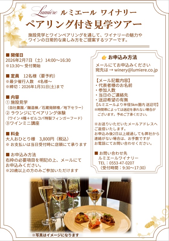 特別プラン『ペアリング付き見学ツアー』を開催いたします。